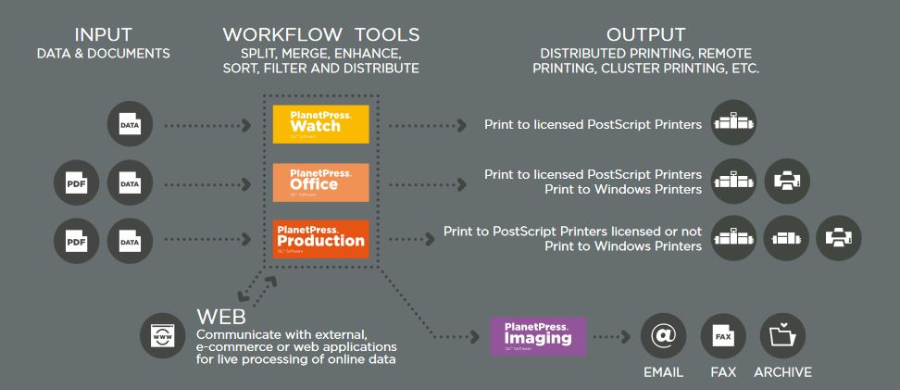 With PlanetPress, it's possible to automatically publish documents to the web or to EDM systems while automating their distribution in the format preferred by recipients, electronically or printed.